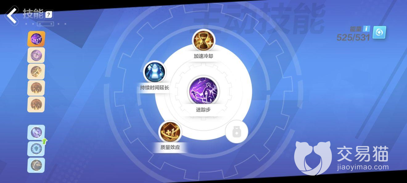 1、技能一:加速冷却、时间增加、迷踪步、质量效应。