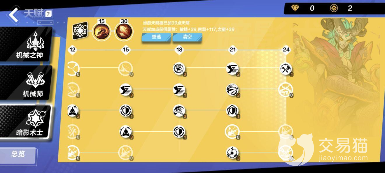 1、天赋推荐:推荐选择机谢之神、机械师、暗音术士。
