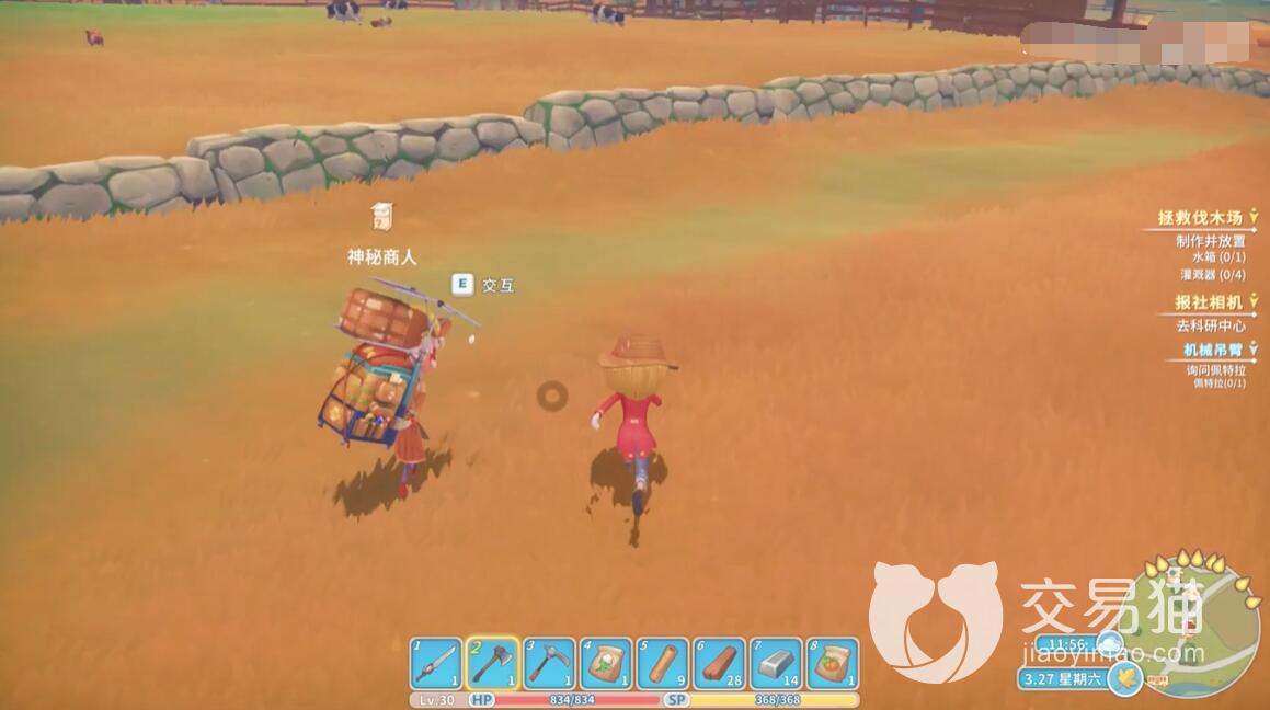 大家跟随着大地图的指引,一路朝着左下方向的位置进行移动,来到了田野之后就会发现正在移动中的神秘商人。这个时候玩家们就可以直接靠近与其进行对话了。在部分情况下,玩家们如果找到了神秘商人还会获得奖励道具。在交谈的过程当中,商人也会向玩家们表示自已拥有很多游戏当中的稀有物品。