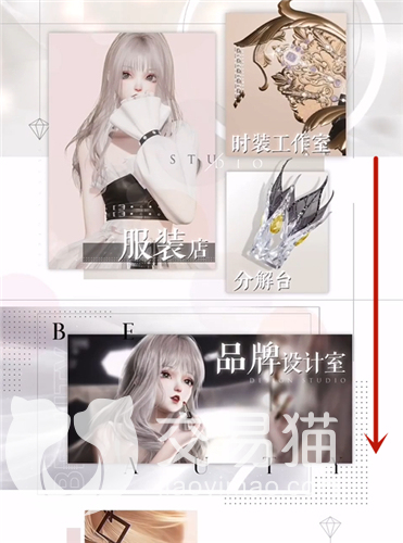 首先需要打开游戏,进入到游戏的主界面当中,在游戏状态栏左下角有一个叫做设计室的功能选项,点击该选项,进入到设计室页面当中,然后接着下滑。