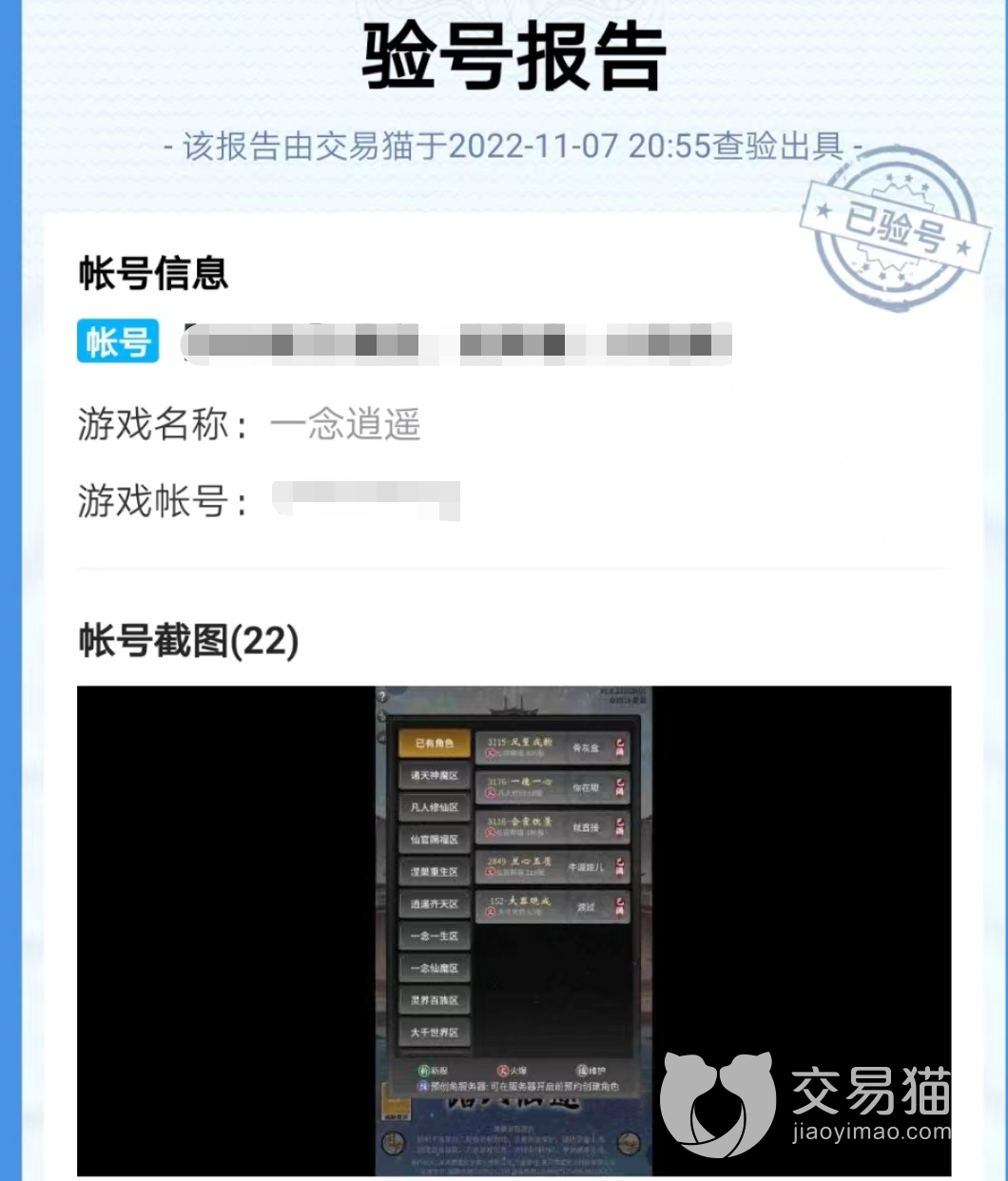 很多小伙伴之前也有过游戏交易的经历,大部分都是在交易的时候才能验号,这种情况就显得十分被动,也容易被对方用假截图来钻空子。交易猫帮大家提前验号,经过平台验号的账号都拥有验号报告,每份报告都是独一无二的,不仅带编号、条码,连验号报告时间都标记得清清楚楚。这样买家在挑选的时候就能通过查看验号报告来进一步判断自己是否需要这个账号,和账号的真实性。