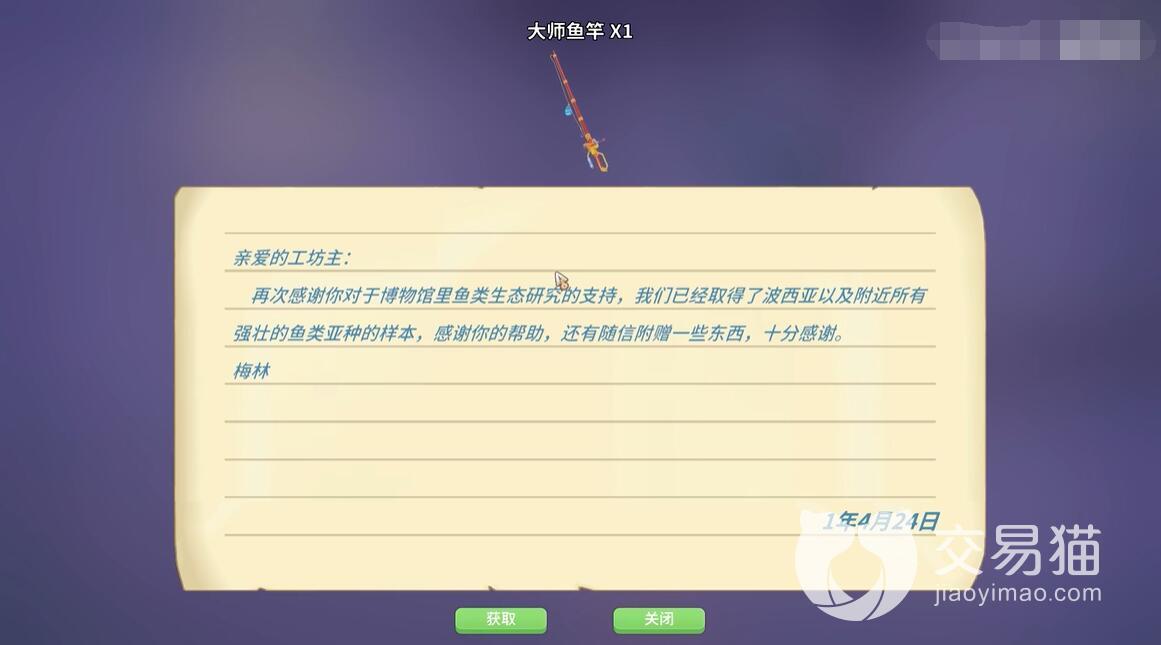 想要快速完成的话,大家返回家园之后可以直接选择睡觉,等到第二天就会发现信箱当中有一封梅林来信。该信封当中就会包含一个高级鱼竿,这一个奖励也是因为玩家们在教堂的鱼缸当中放入了稀有鱼类而获得的。该鱼竿的整体属性不错,可以帮助玩家们去获得更多高级的鱼类。