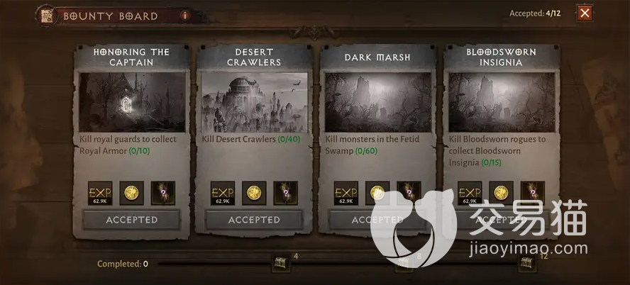 悬赏任务无非是该游戏获得经验的另外一种重要途径,毕竟这类任务不刷怪怎么行?怪物身上都有所谓“怪物精华”掉落,每拿满十个都能去给赫拉迪姆祭坛上交一次,每天一共能反复三次,每次上交都能获得大量的经验,所以可千万别忘了这件事。另外悬赏任务在交付之后也会获得经验值回报,这些悬赏任务每天都会刷新出八个。