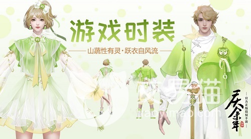 其中最主要的蔬菜精灵为“莲藕狐”和“菜狗”两个坐骑,造型有点胖嘟嘟的感觉,在玩家骑上这些坐骑在地图上奔跑的时候,有一种非常亮眼的感觉,绝对能够让你成为游戏中最别致的风景,不仅有全新的坐骑加入,同时将符合精灵外貌的时装也给玩家推了出来,整体的色调为菜狗的绿色色调,服装半透明有一种仙气飘飘的感觉。