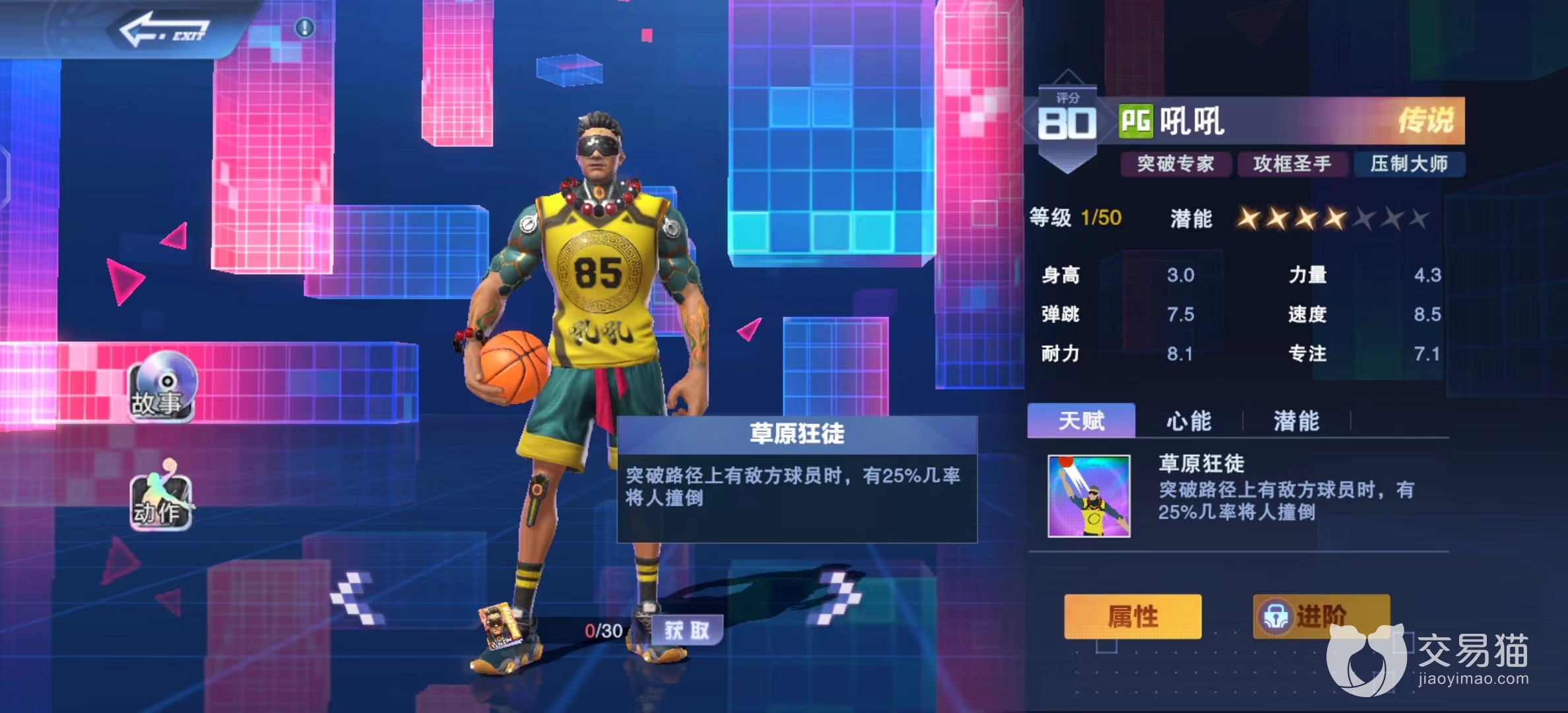 相比起其他组织后卫,吼吼的优势在于突破方面,突破专家的名号可不是白来的,所以有玩家说吼吼的原型是NBA中的威斯克布鲁克,放弃传统后卫的三分球,以突破和中投来获得分数,吼吼的天赋和心能都是在突破的时候有几率撞倒对手,这让他在和其他后卫的对决中有更大的优势,即使面对小前锋的防守也不会处于劣势。