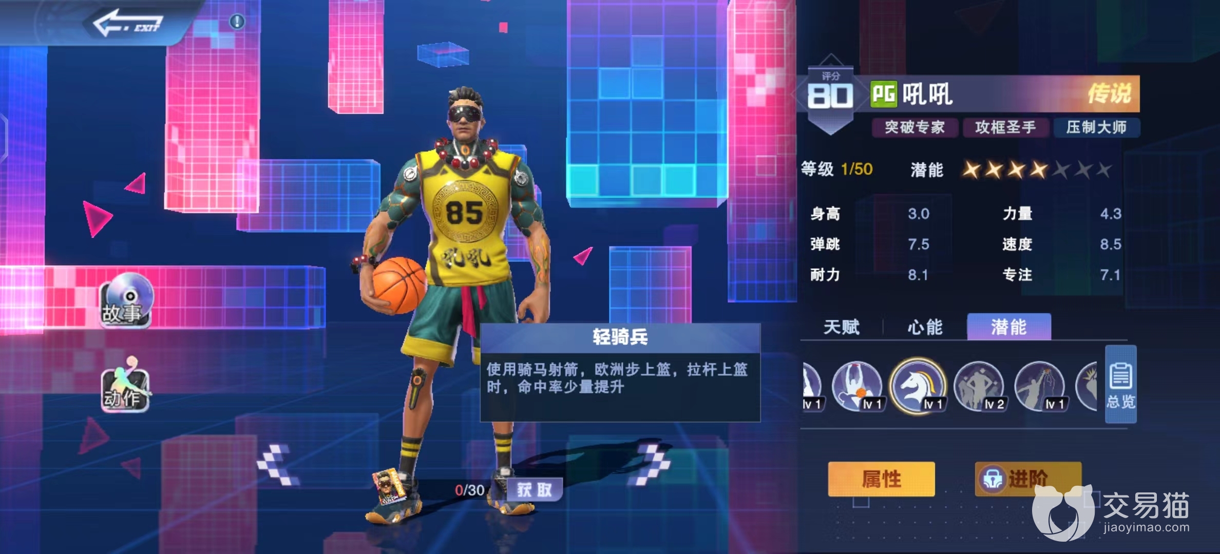 而在潜能方面,轻骑兵是吼吼的特色,使用骑马射箭、欧洲步和拉杆上篮可以获得命中率提升,在三秒区内,吼吼也更容易发动扣篮,这让他有更强的攻击力,即使是大前锋面对吼吼也不敢掉以轻心,是一个十分有威胁的组织后卫。