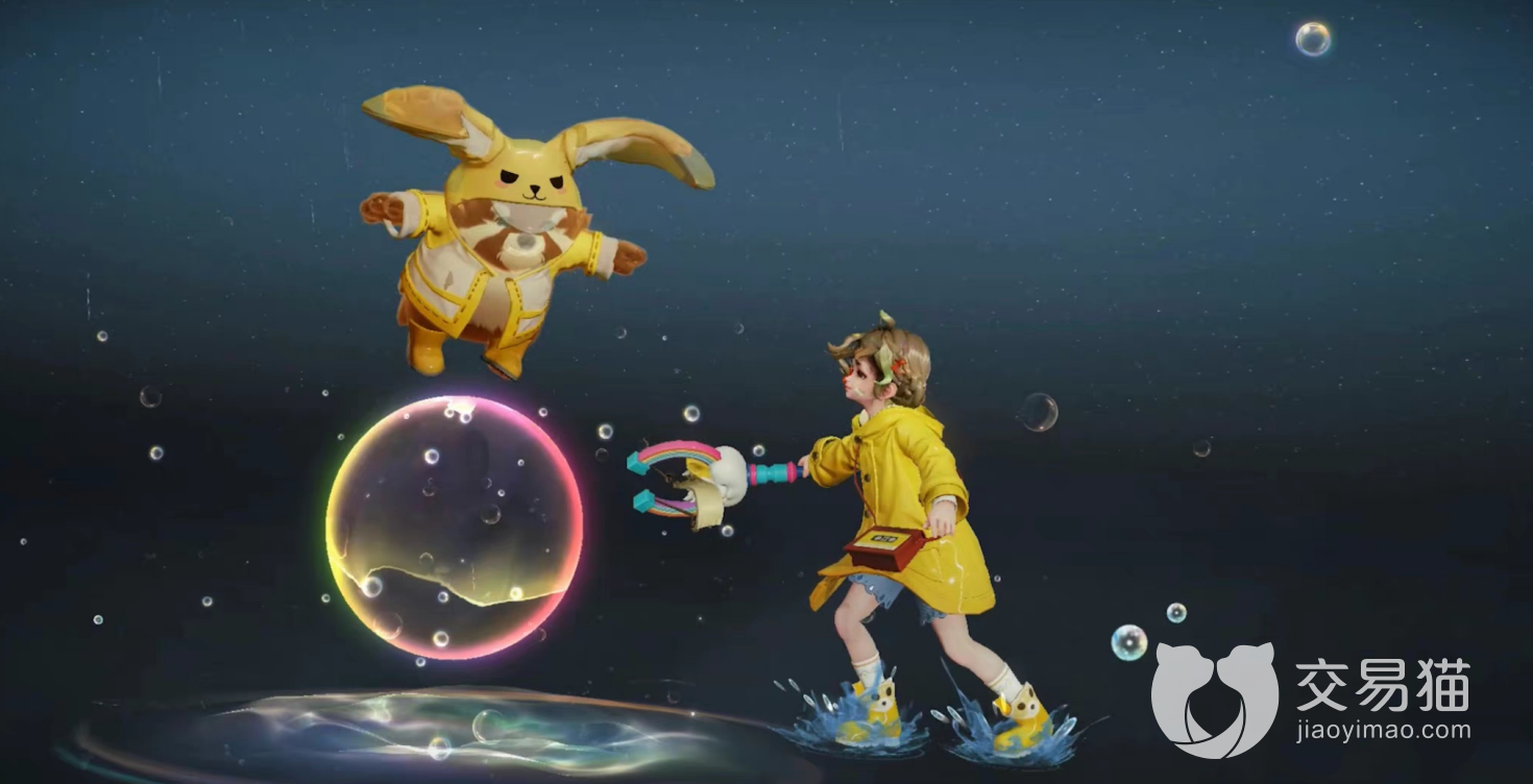 在这款皮肤中,人物个性化设计围绕童年的欢乐时光所展开,形象定位也大不相同。阿古朵身着黄色雨衣外套,变成扎着可爱的双麻花辫,手里拿着彩虹和小狗图案的玩具的女孩子,生动童趣,颠覆了人们以前认为的的中性风格,身后是熟悉的萌宠球球黄白相间。