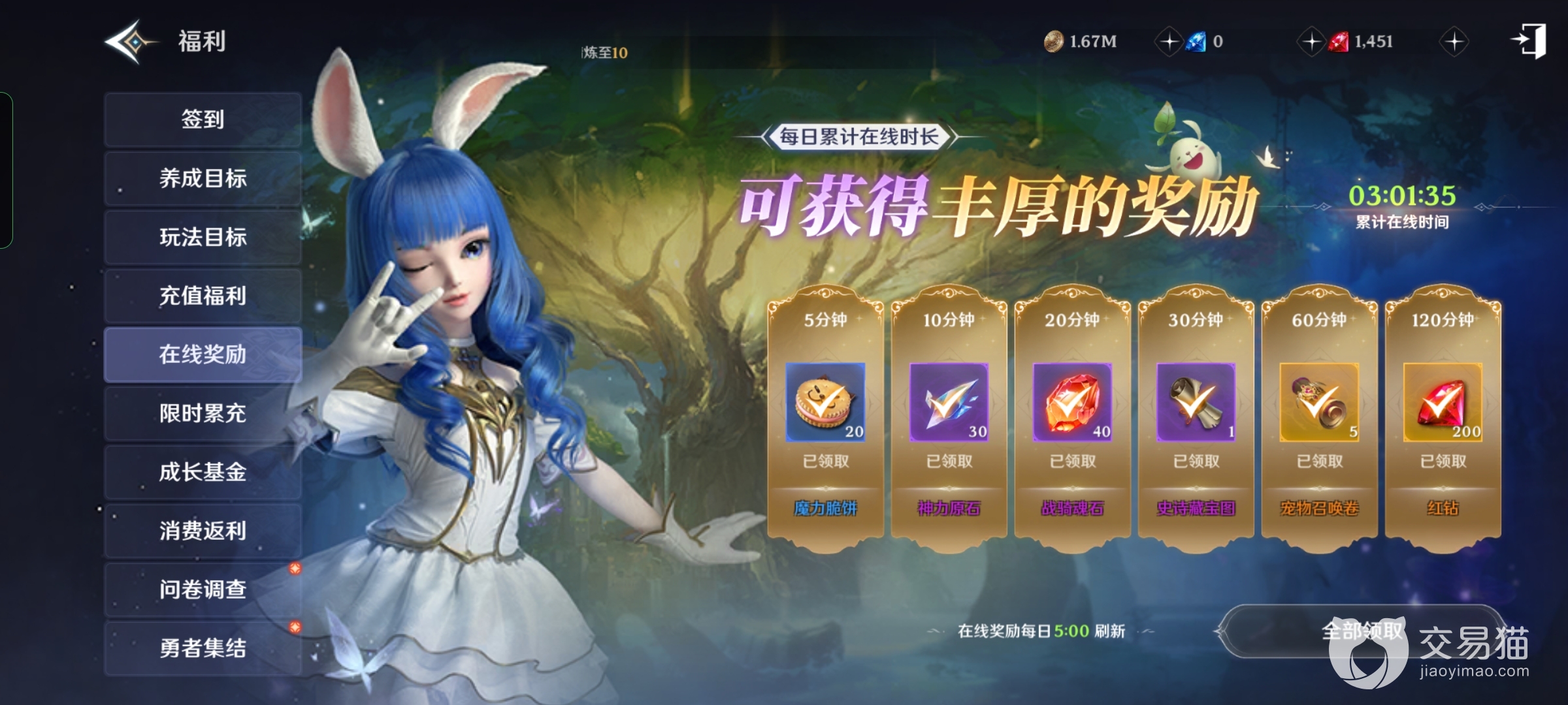 这款游戏游戏正在举行开服的狂欢活动玩家下载游戏即可领到众多的开服奖励,点击嘉年华的活动玩家就能领取开服七天的所有奖励,包括专属的武器皮肤只因坐骑,还有金色品质的宠物任选箱子,还有五级的武器的镶嵌石头以及一次十连召唤宠物的机会。