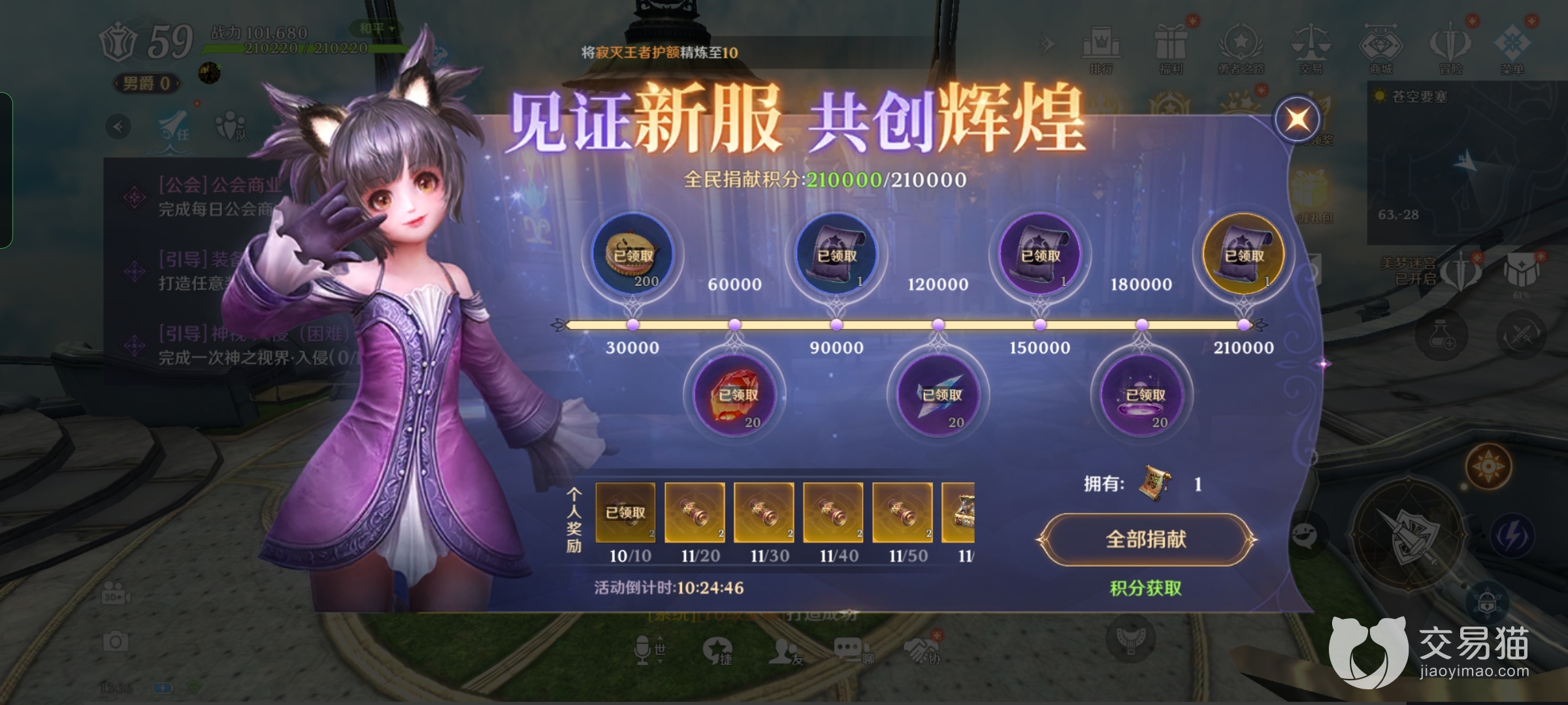 除了上述这些,玩家游玩游戏还能给自己的服务器增加活跃值达到足够的数值就能获得限定的称号奖励,个人活跃贡献足够还能有传说宠物的自选箱子。