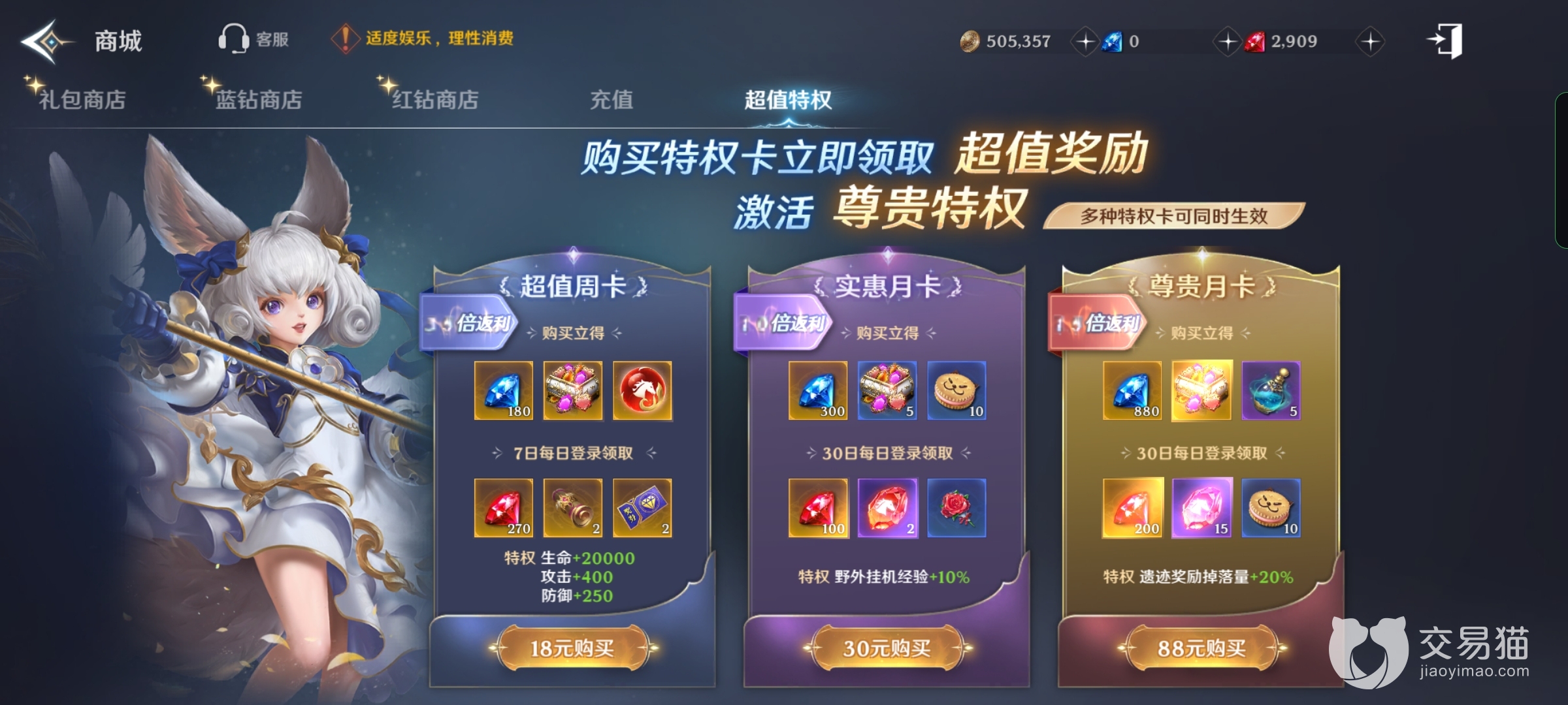 最后当然玩家如果对游戏感兴趣可以买成长基金这样红石头就用不完了不过每个号只能买一次属于充值玩家必须买的项目,充值足够的数量还有贵族特权解锁神秘商店买到各种稀奇的道具,这就属于比较能氪的玩家了。现在世界拍卖行的东西不算多等到更新的内容增加之后玩家可以在上面买到更多的东西增加战力还有各种好运才能得到的服装。