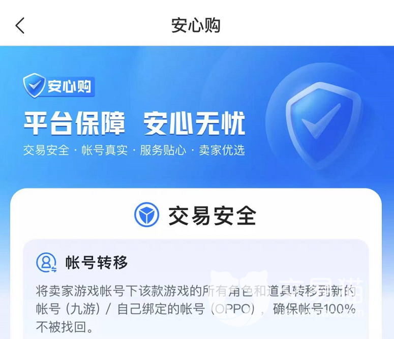 大家在账号交易的时候,最为担心的无非就是信息虚假,或者是被找回等问题,这对于买卖双方来说,都是致命的,尤其是用户的隐私,完全得不到保护,而使用交易猫,就能够很好的避免这一问题的出现,除了可以通过客服来帮助小伙伴们解决所遇到的难题外,它还有着安全学堂以及安全购等多种保障服务,为用户的交易保驾护航。