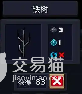铁树:成长周期为一天一成熟,为一次性农作物,能够直接获取三个铁矿,使用范围大,基本上锻造武器都会需要铁矿。