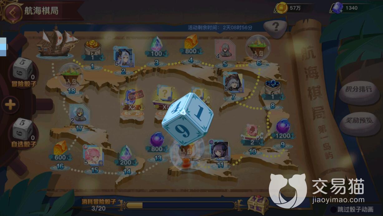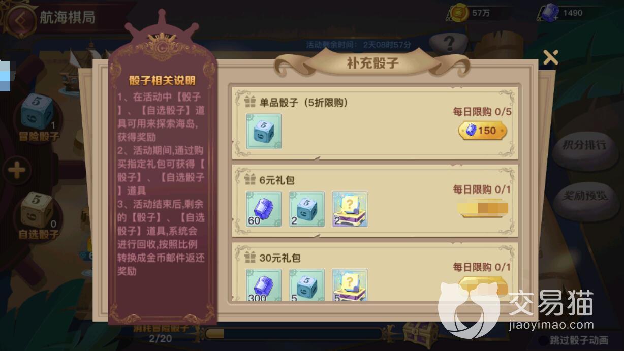 同时,大家每一次购买将消耗掉150个钻石,同时最多也只能够购买五次。相当于一共7次使用骰子的机会,完成之后小编就不建议大家购买其他的礼包来增加次数了,因为性价比相当的低。开始玩棋盘之后,大家点击左方的骰子即可得到相应的点数,角色会朝前移动去随机的获得部分奖品。