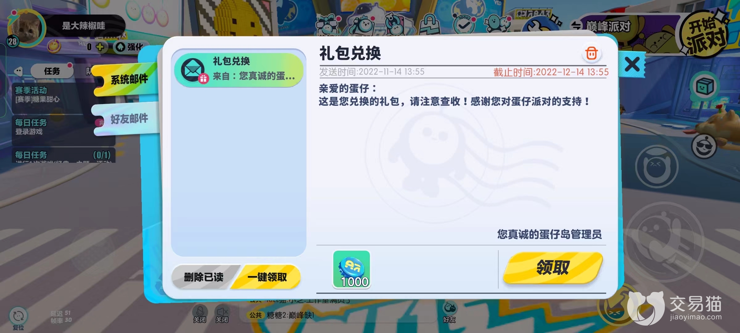 第二步输入所知道的蛋仔派对的最新兑换码,就可以得到“兑换成功”的提示