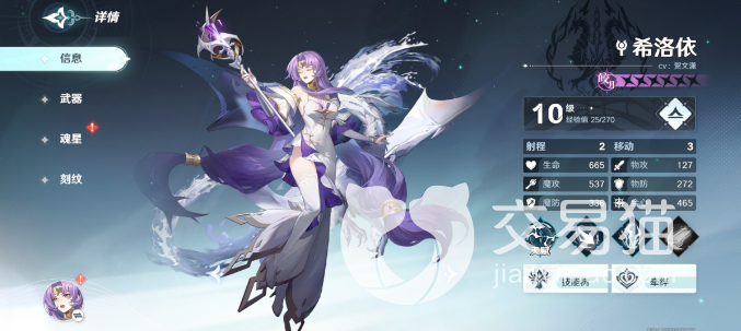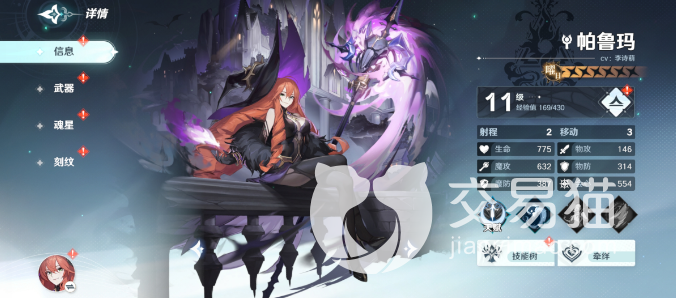 她是一个充满魔力的魔女角色,等级是曜日,主要技能是可以为自己提供增益,在攻击的时候通过buff来让自己的普攻伤害更高,但是在法术能量上依赖比较强,不管是对单人还是对群体伤害都还不错,但是在组建阵容的时候要为她配一个可以充能的英雄会更加的适合。