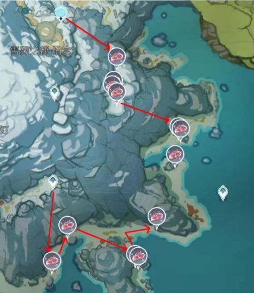 1、前往雪葬之都九宫附近的七天神像位置,沿着海边直接飞过去,在下面的平台有很多被冻住的野猪,将平台的野猪全部击杀之后会出现野猪王,野猪王为野外BOSS级别的生物,不过不需要消耗体力就能够获取奖励,奖励为大量的冷鲜肉,每天刷新一次,将野猪王大道之后继续沿着海边向南走过去,在海边被冻住的野猪数量非常的多。
