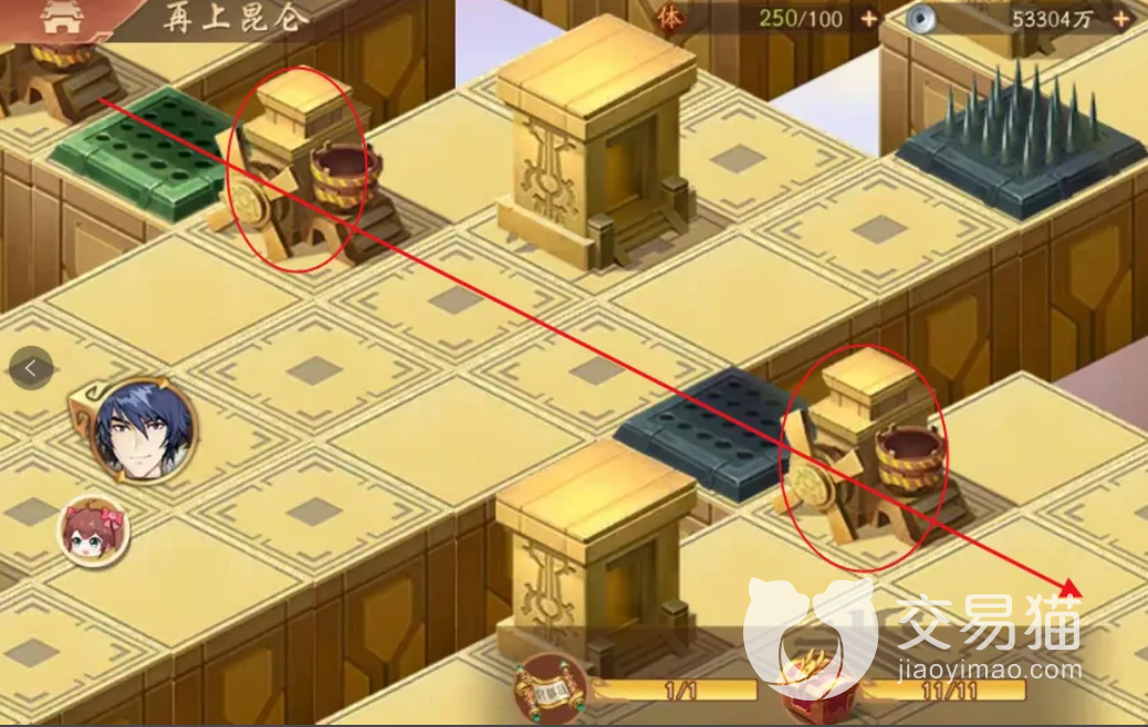 当玩家通过第二关的传送后沿着箭头的方向可以找到一个机关,通过单点击机关就可以关闭地刺,保证通关线路通畅。当关闭所有地刺后,玩家顺着原路往回走,然后向下走,就可看到传送阵了。
