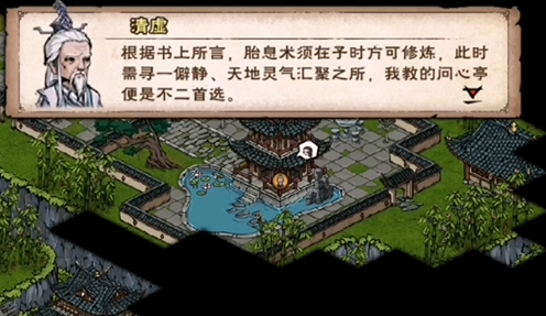 依次搜索三个地点后,最终将在问心亭找到一本名为胎息精微论的书籍,拿着它回去找清虚道长,并在物品给予中将这本书籍给予他两次,就会触发是否请教道长的对话选项,选择请教后会得出修炼胎息术的最佳时间与地点,也就是子时和问心亭。