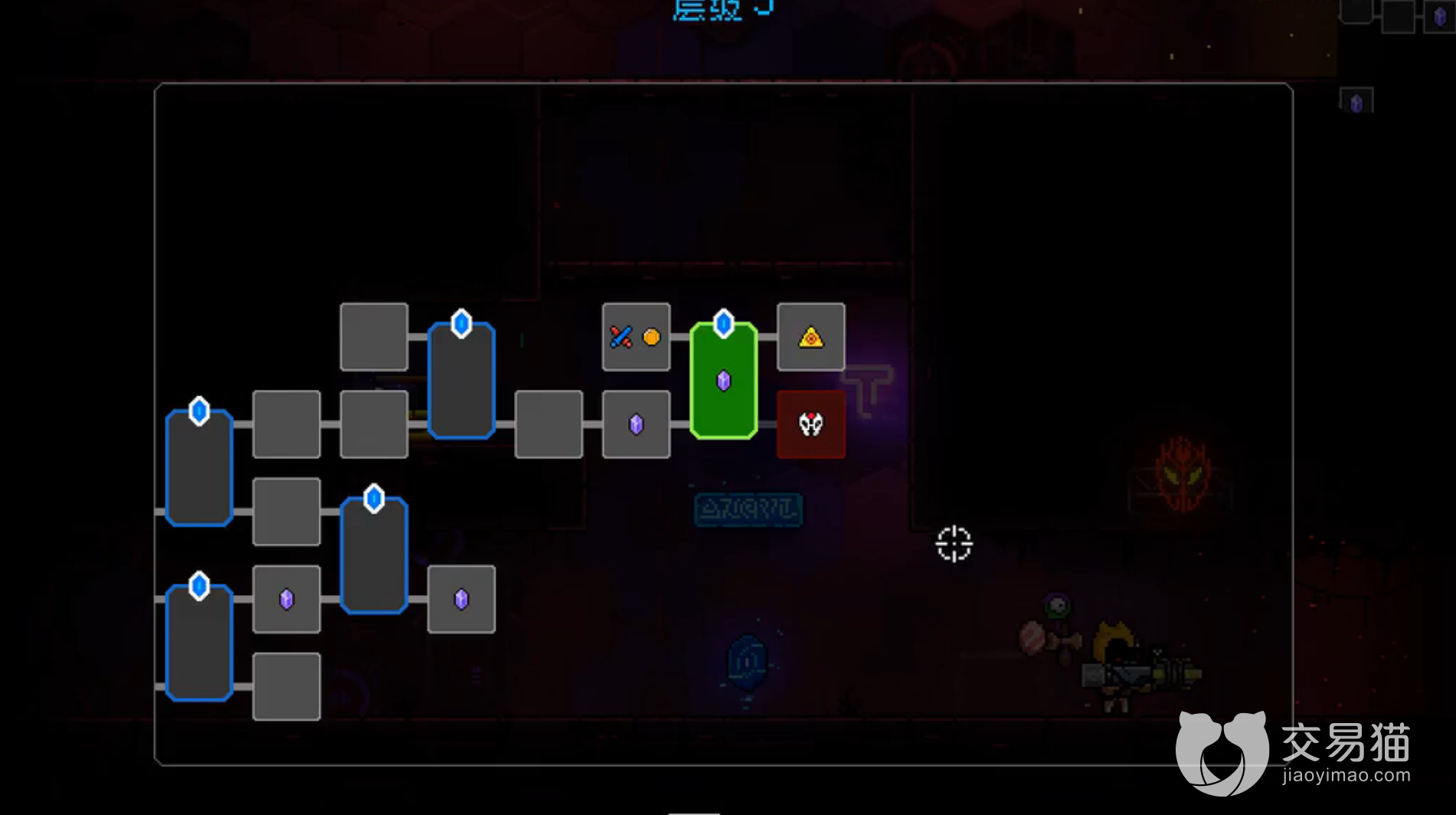 想要进入办公室,开局还得不断的直接往右走,走进最下面的深渊,如下图所示。我们要多刷图才能解锁新的场景,要刷到出现办公室场景为止。
