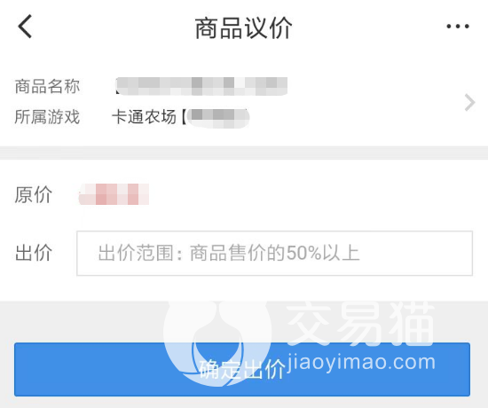 3、商品议价功能的开放,也会让玩家和商家之间可以进行更合理的价格商谈。对于部分十分感兴趣的商品,但价格上玩家们认为有待商榷的时候,各位就可以合理使用交易猫app的议价功能。当玩家和商家达成一致的时候,也就可以直接完成本次商品交易。