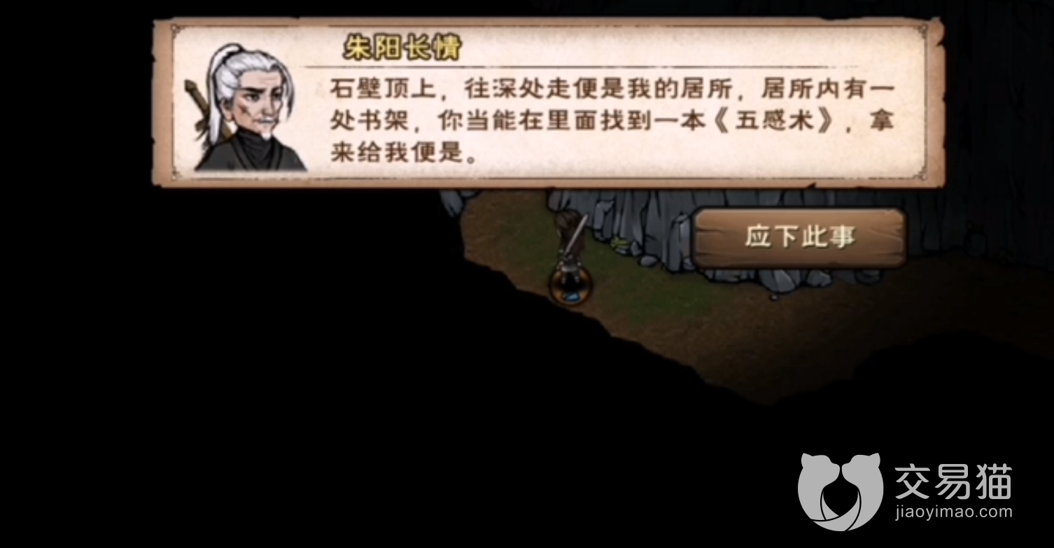 想要获得五感术,玩家首先前往华山,在(34,4)处寻找并进入山洞。在进入山洞后,只要一直沿着山洞的道路走,就会在途中遇见朱阳长情他会为您介绍山洞里的情形而后会拜托你为他寻找一本叫《五感术》的书,你需要答应他。