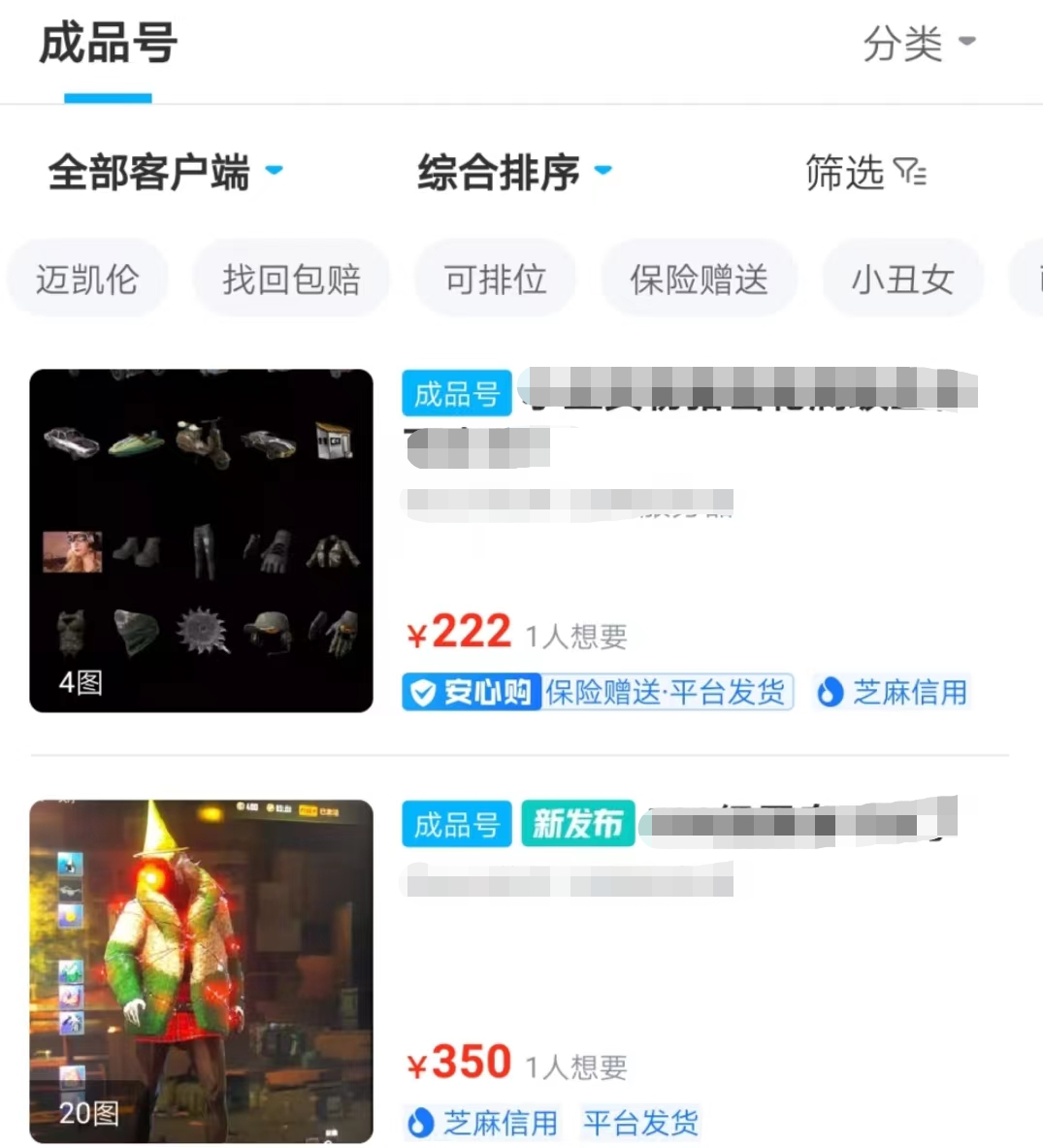 在交易猫可以买到的绝地求生账号种类非常多,比如服装号、枪皮号、KD号,甚至是拥有前不久才在游戏中上线的迈凯伦账号都有,由此可见在交易猫买绝地求生账号,不仅买的便宜,还有多种账号可挑选。