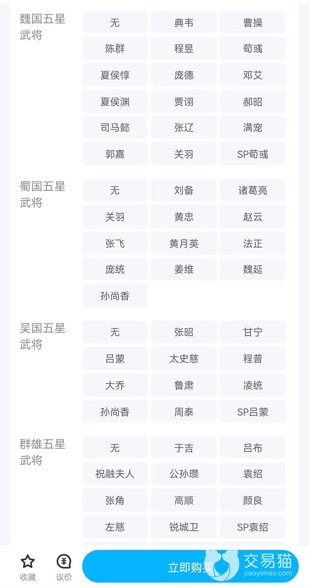 在该平台中出售账号展现非常丰富,这是为了提高成交的效率和速度,买家无需再花时间去了解账号详情中,就已非常清楚的展现了最有价值的内容。以三国志战略版这款热门游戏为例,账号中所有的顶级武将都很清楚的展现在眼前,并且在筛选功能中,还可以选择自己想要的武将,将具有该武将的账号直接筛选出来,然后进行价格方面的排序。这样就能以最低的价格获得自己理想中的阵容,其他游戏也和此类似。为了展现更加方便,平台还为每一款游戏都设置了模板。