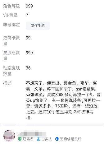 2、交易猫平台买卖账号非常有保障,卖家在上架账号之前,都会将个人实名信息进行登记,在买号之后交易金额也会先由平台进行保管,待确认无误且安全之后才会发给卖家,所以无需担心自己会上当受骗,还能直接在网页中看到卖家的信息认证,如果后续账号出现找回、盗回的情况,平台也会进行全额赔付。
