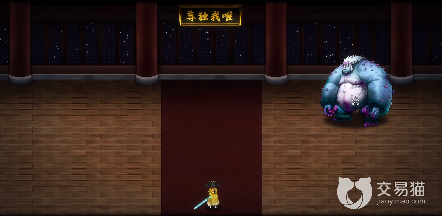 首先来到来到他的宫殿,这里他还保持着人的形态剧情里玩家二话不说就结果了他,当然没有对战这个怪是不会草草下场的,之后他会变成类似蓝毛猩猩的模样这就是玩家需要对付的本体。