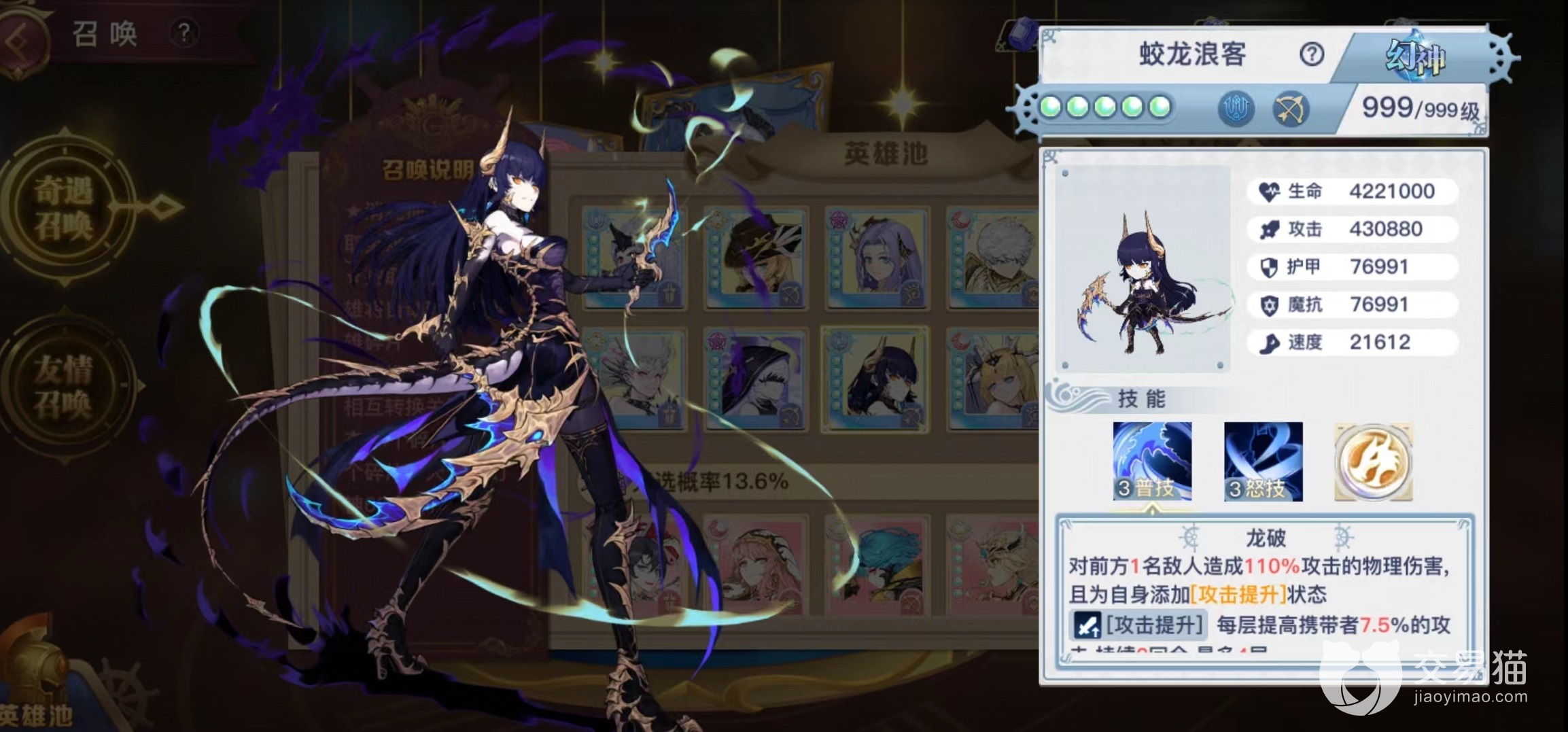 前期可以获取的自选幻神礼包并非直接开出整张英雄卡,而是以碎片的形式呈现,但是只要数量够多集齐60个,就可以获得一张完整的英雄卡片。在进行选择的时候原则有以下两个,第1个是队伍中已经有了成型的幻神英雄,那么在兑换的时候就以自己的核心为主,用于后期英雄的升星。第2个是如果还没有成型阵容,那么首先建议选择蛟龙浪客、魔影天罚和驭龙使者这三个之一。