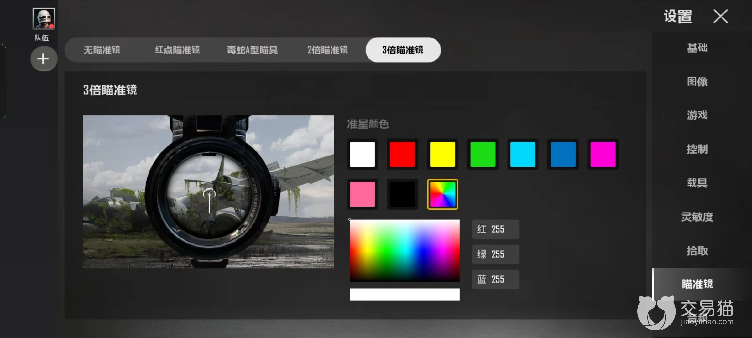 想要调试准星颜色,玩家需要先进入设置界面。找到瞄准镜专栏,此时玩家选择对应的瞄准镜,就可以进行准星颜色的调试了。系统还为玩家提供了准星的预览功能,便于玩家进行设置。