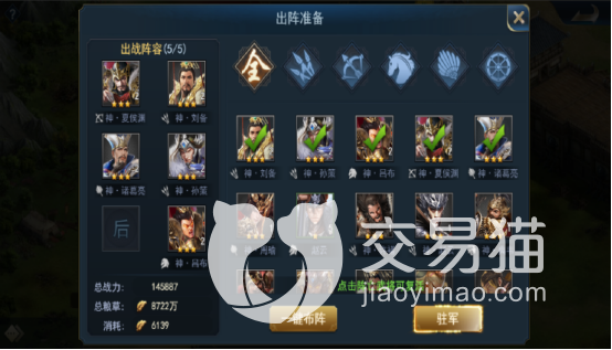 在每次比赛开始前,玩家都要排列好阵型。点击屏幕右边的“上将”图标,进入战场。每次战役可以派出1至5位将军,而在国家战争中,只能派出5位将军。在游戏中,玩家可以在游戏中选择游戏的地图,然后在游戏页面的右侧单击“远征”键。