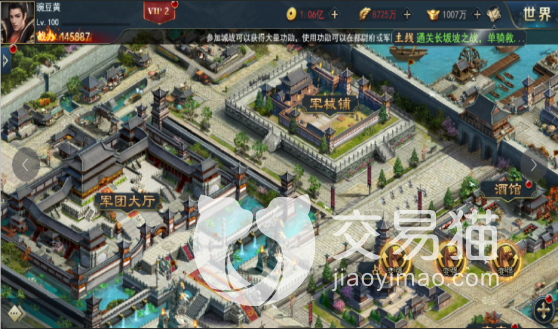 在游戏的右上方按下“世界”键,即可到达游戏的世界。当玩家进入游戏时,这个按键会变成一个回到城镇。玩家可以通过单击这个键回到这个地方。在城里,酒馆招募,客栈宴请,市场上购买道具,参加武术比赛,购买资源,参加战役。在游戏中,玩家可以通过游戏来进行游戏、参加游戏、访问游戏。