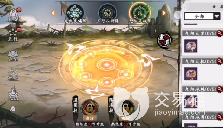 最后一个阵法叫做九阳无极阵,这个阵法可以给游戏中的大侠们攻击力和防御力都增加。这些阵法都需要玩家们去培养才可以发挥最大的威力,有些阵法还需要有相应的大侠参与才可以练成。