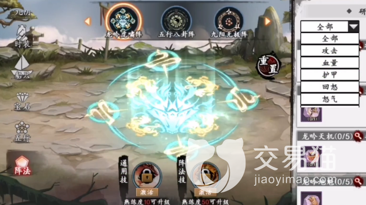 小编发现在游戏中只可以选择几个阵法,比如龙吟虎啸阵,这个中阵法的作用就是可以加攻加血,还能防御,属于是个属性均衡的阵法。