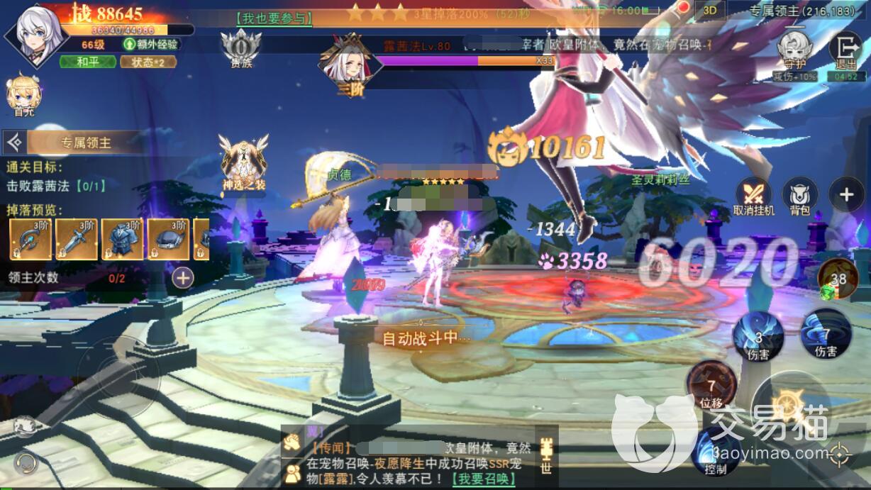 开始战斗之后,辅助作战的宠物推荐大家选择安其拉,该宠物会提高主角的生存能力,同时也可以对boss造成高额的伤害。玩家们此时就需要释放大量的输出技能去消耗对方的生命值,敌人反击的时候立刻使用位移技能进行躲避,如果丢失了大量的生命值,建议大家准备充足的恢复药剂来进行使用。