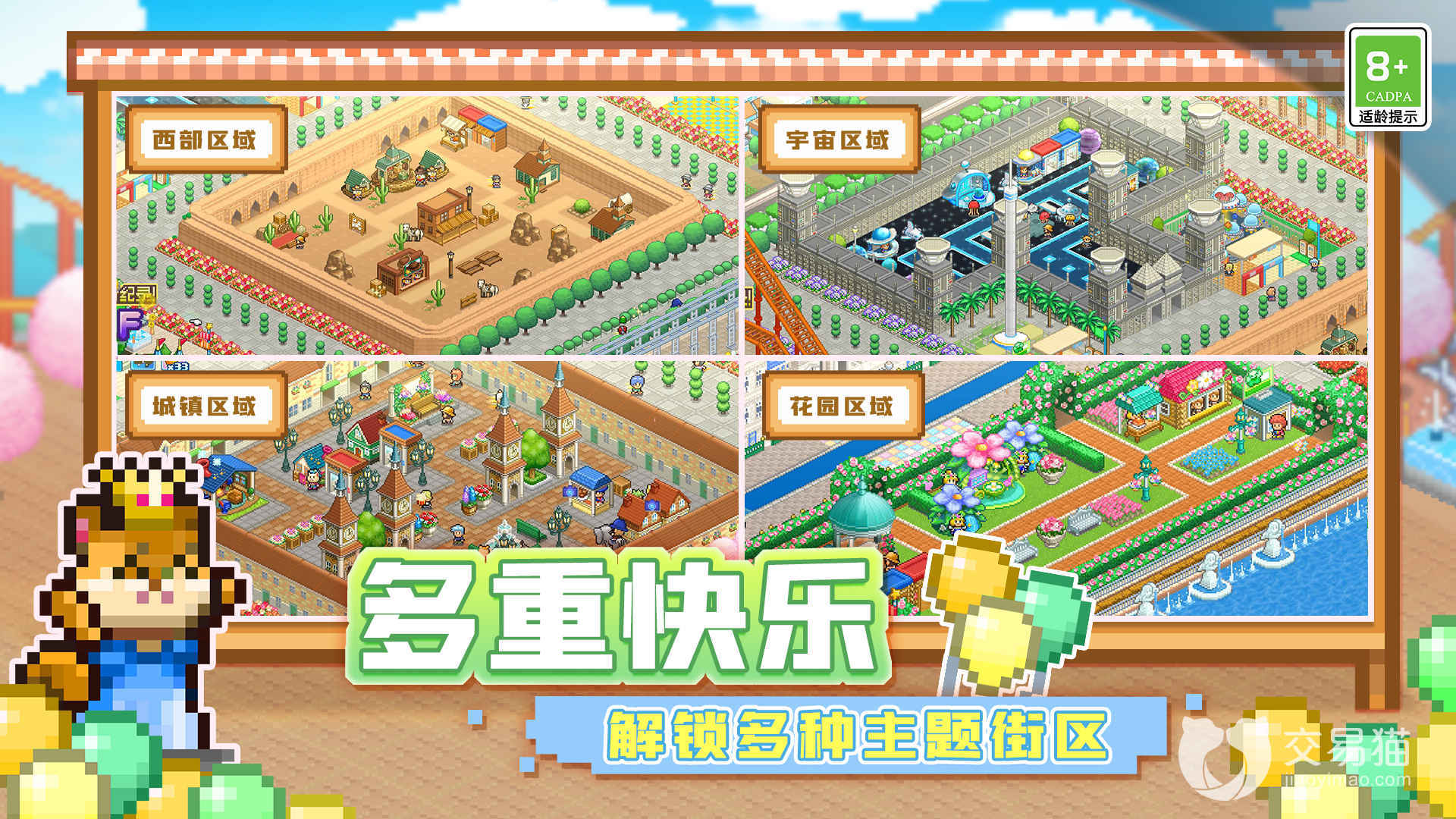 因为内容的丰富,这次的体验上在很多方面是超越了开罗系列之前的游戏,游戏的主线目标是建造一个火爆全社交网络的主题乐园,乐园分为不同的主题区域,不同区域又有很多小场景,每个设施都需要进行管理,优化和不断增强。不同区域吸引人的方式也不尽相同,所以更加考验玩家的整体思维。