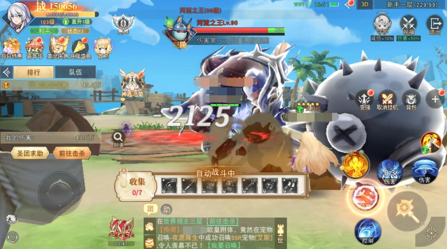 这个阶段玩家们就需要减少释放技能的次数了,每一个位置释放两次技能之后,利用位移技能快速进行移动,然后继续释放。这样才可以有效的躲避对方的反击,河流之王也会在消耗战的过程中被打败。玩家们在这一阶段赢得胜利之后,将得到红色品质的高级武器,战力也会明显增加。