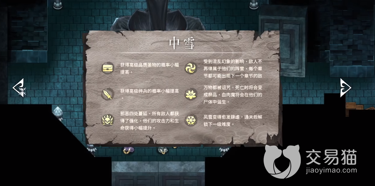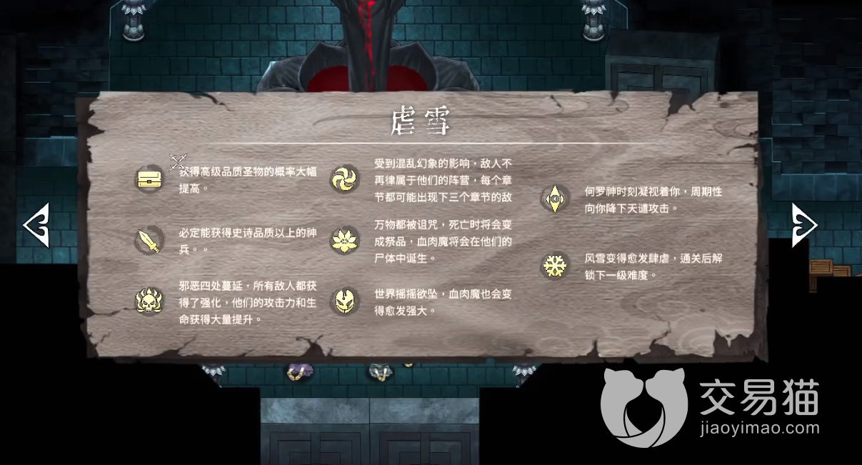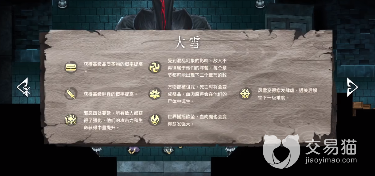 来到虐雪难度下玩家的游戏才真正开始,玩家的高品质buff获取概率大幅度up,可以走各种流派的玩法这个时候正是游戏好玩的时候,最求通关的玩家一次打完就算结束游戏了,还要更多的动作体验的玩家还能继续玩下去总共是二十个小时左右的时间。