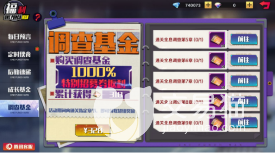 5.限定招募活动礼包。游戏官方每隔一段时间就会开启一次限定招募角色活动。我们可以通过氪金在活动期间抽到所需要的强力角色并且将其升级至高等级。这样总的来说,《一拳超人正义执行》的氪金程度尚在可以接受的范围之内。
