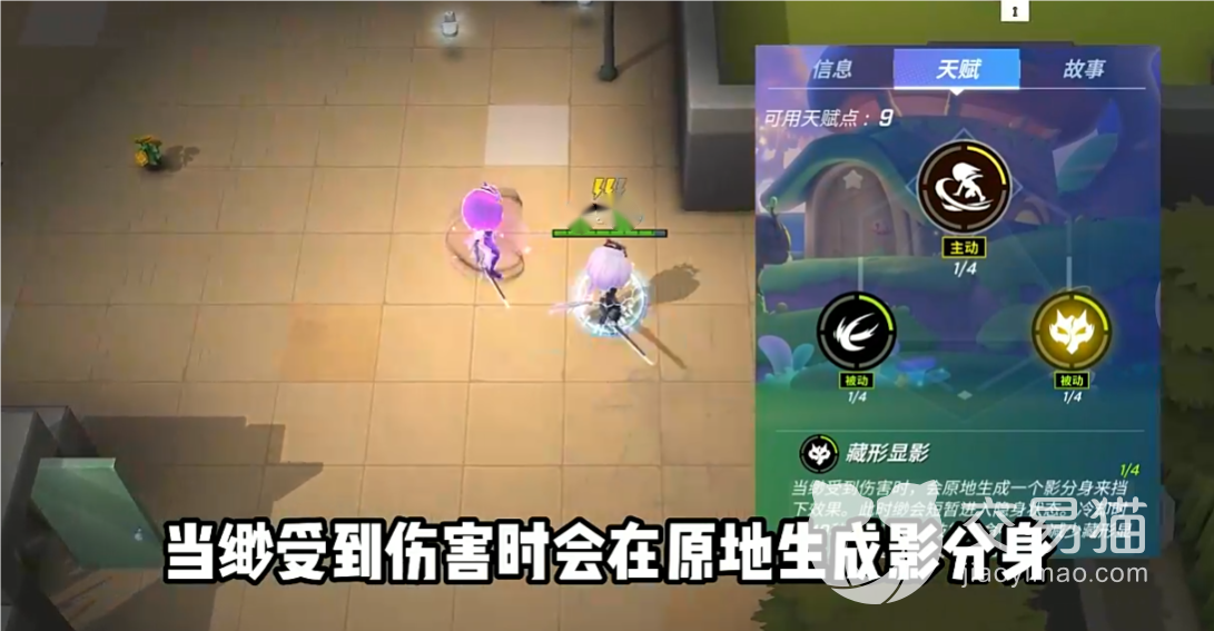 最后分身是越多越好,所以防身的被动是玩家受到伤害会由分身阻挡然后玩家隐身直到攻击或者时间结束才会现实自己,影子也能搭配上一个被动还能迷惑敌人。