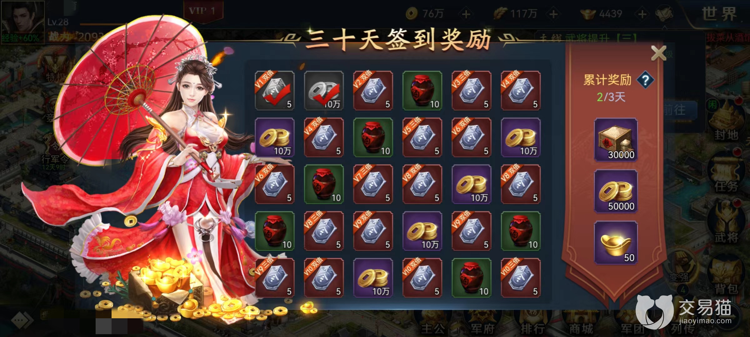 通过每天签到也可以领取数量不菲的招募令,但是在这里需要注意的是,如果开了VIP等级,那么将会获得双倍奖励。30天累计下来就能比一般玩家多十几次10连抽资格,这也是拉开差距的重要选项。
