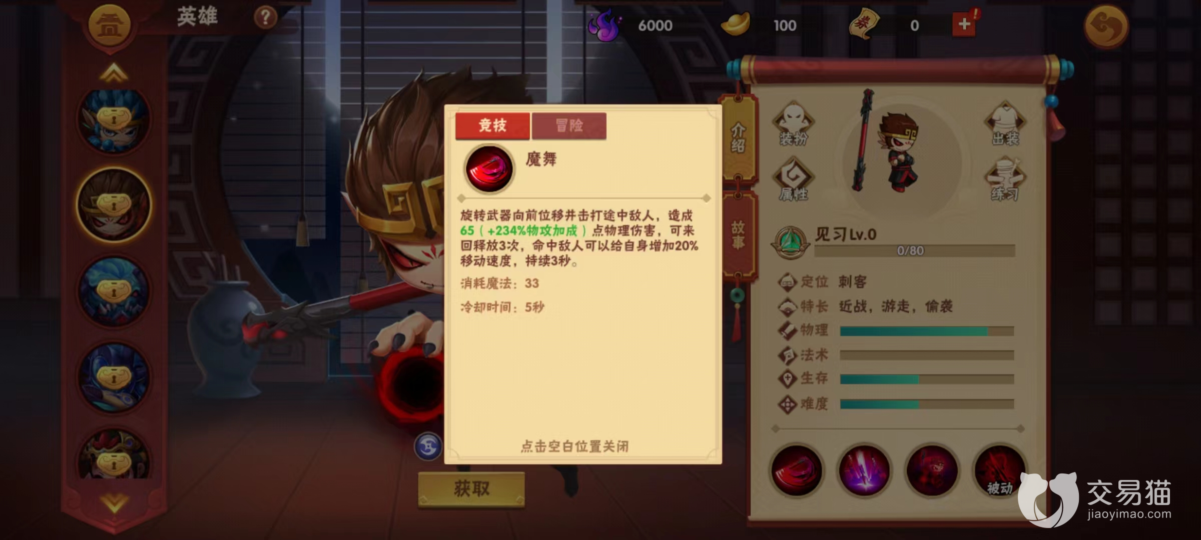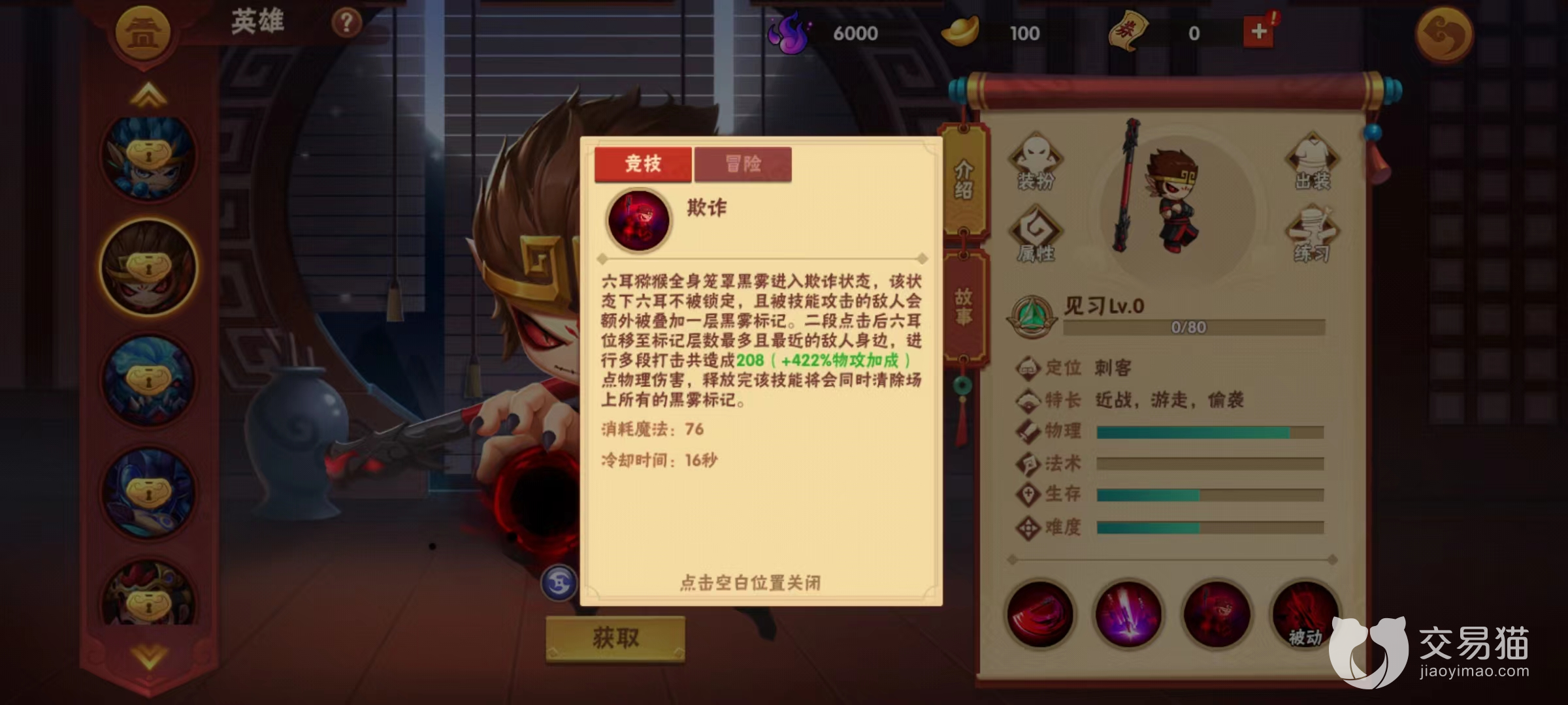 看完介绍后大家现在知道造梦大乱斗手游六耳猕猴怎么用了吧,该英雄拥有非常强的爆发输出,但是比较依赖连招,所以大家在使用前一定要先练习几次。
