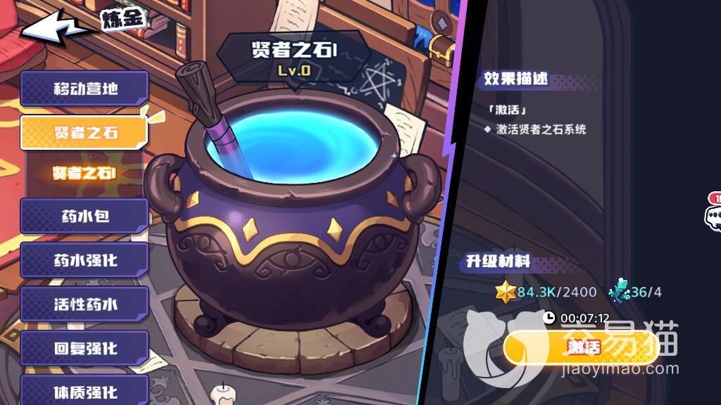 在正式的将贤者之石进行激活之前,玩家们还需要在游戏当中将炼金工坊正式的进行解锁。随后,大家就可以直接进入到炼金的页面当中找到贤者之石的激活方式。在这里玩家们可以了解到当前激活第一个等级所需要消耗掉的材料。成功激活之后地每一次升级,消耗材料的数量都会发生变化。