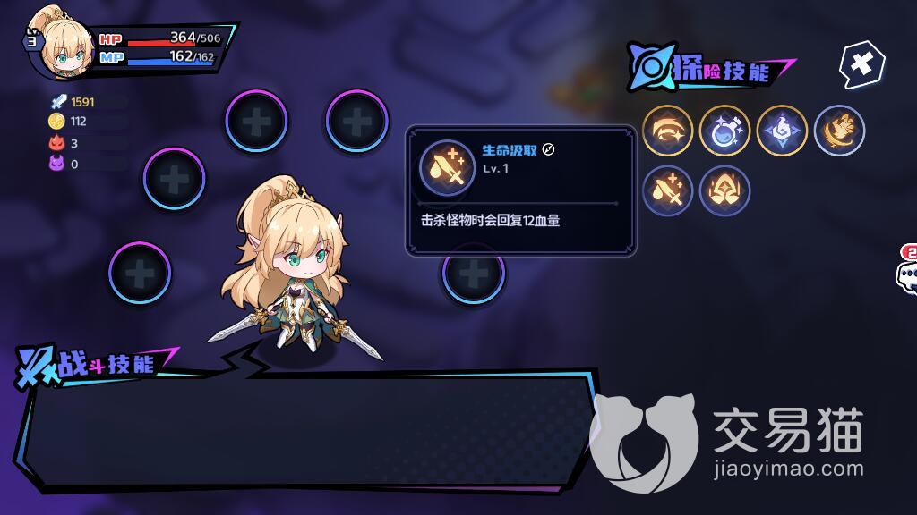 同时大家也会通过战斗不断的获取到祝福点数,玩家们需要将这些祝福点数运用在解锁相关的技能上,推荐大家去激活一个生命汲取技能,该技能可以提高角色的生命恢复能力,让大家跑圈的时间可以变得更多,同时也可以在面对强敌的过程当中,很好的生存下来。
