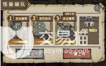 在战斗开始之前,需要玩家先准备三个怪兽,两个用来攻击建筑,一个用来消灭敌人,第一轮进攻开始的时候,敌人就会快速进行部署,与其他关卡的速度有很大的差异,同时会给怪兽带来超高的攻击伤害,需要玩家时刻注意怪兽的血量,只有时刻注意怪物的血量,才能够方便后期撤退治疗。