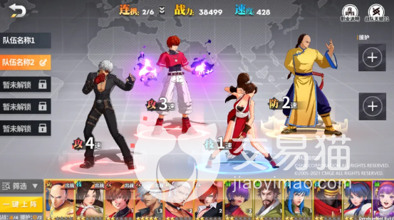 狂暴队,跟它的名字一样也就是爆炸输出较为强势的一种组合搭配,格斗选择上要以主攻输出位着手进行搭配,首选小编推荐八神庵搭配不知火舞为核心的输出位,这两位格斗家在游戏里面是属于伤害爆炸超高的连个格斗家,在加上远程技能控制的位置,这个位置上的格斗家没有过度的要求,前排在安排一个李烈火或者霸王丸这种带有伤害的防守坦克位,基本上类型的阵容就是极具爆炸伤害的狂暴队了。