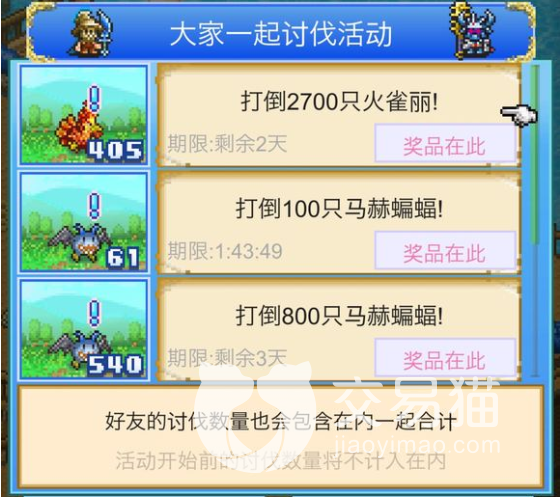 目前来说这个怪没有刷的必要,因为这是之前的一个讨伐活动需要大量刷的怪,虽然说游戏总会复刻活动,但是在活动之前再怎么刷到时候也不会算数量。当然下次复刻活动怎么样效率才高呢?最简单的办法就是找个好友联网一起刷,因为好友讨伐数量也会算在内的,不光是火雀丽,基本上游戏里的每期讨伐任务都能按这个套路来,然后刷完都有小奖品,每一期的活动任务奖品都各不相同。