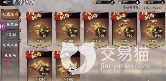 2、充值返利,点击该目录下方的礼包码