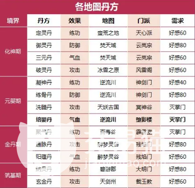 在这里小编建议大家一定要和各大门派处好关系,相关的任务最好都不要落下,因为好感度是获取丹方很重要的条件,当然除了个别需要我们打败掌门的门派除外。到了这里,想必大家都清楚了丹方的获取方法了,那小编的分享也就要结束了,非常感谢大家的观看,也预祝大家在游戏中大杀四方,早日成为顶尖的门派。